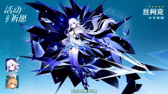 在版本第二期角色活动祈愿中,角色活动祈愿「虚星临渡」将会开启,限定五星角色「虚渊暗星 · 丝柯克(冰)」将迎来概率UP,而限定五星角色「明绚千韵 · 爱可菲(冰)」则在角色活动祈愿-2「莓色香颂」中迎来返场。